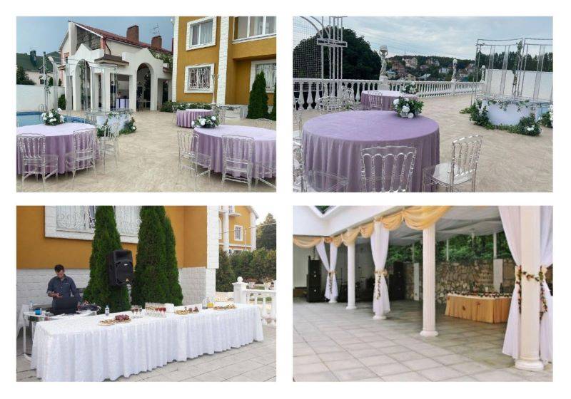 На территории комплекса находятся несколько строений ,территория для церемонии,летний бассейн,которые предназначены только для Вас и ваших гостей. Менеджер поможет расчитать ваш банкет, поможет в организации.